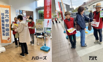10月26日ハローズ、29日万代の店頭で、役員、協力員の延べ31名の皆さんに参加頂き、「赤い羽根共同募金」を実施しました。